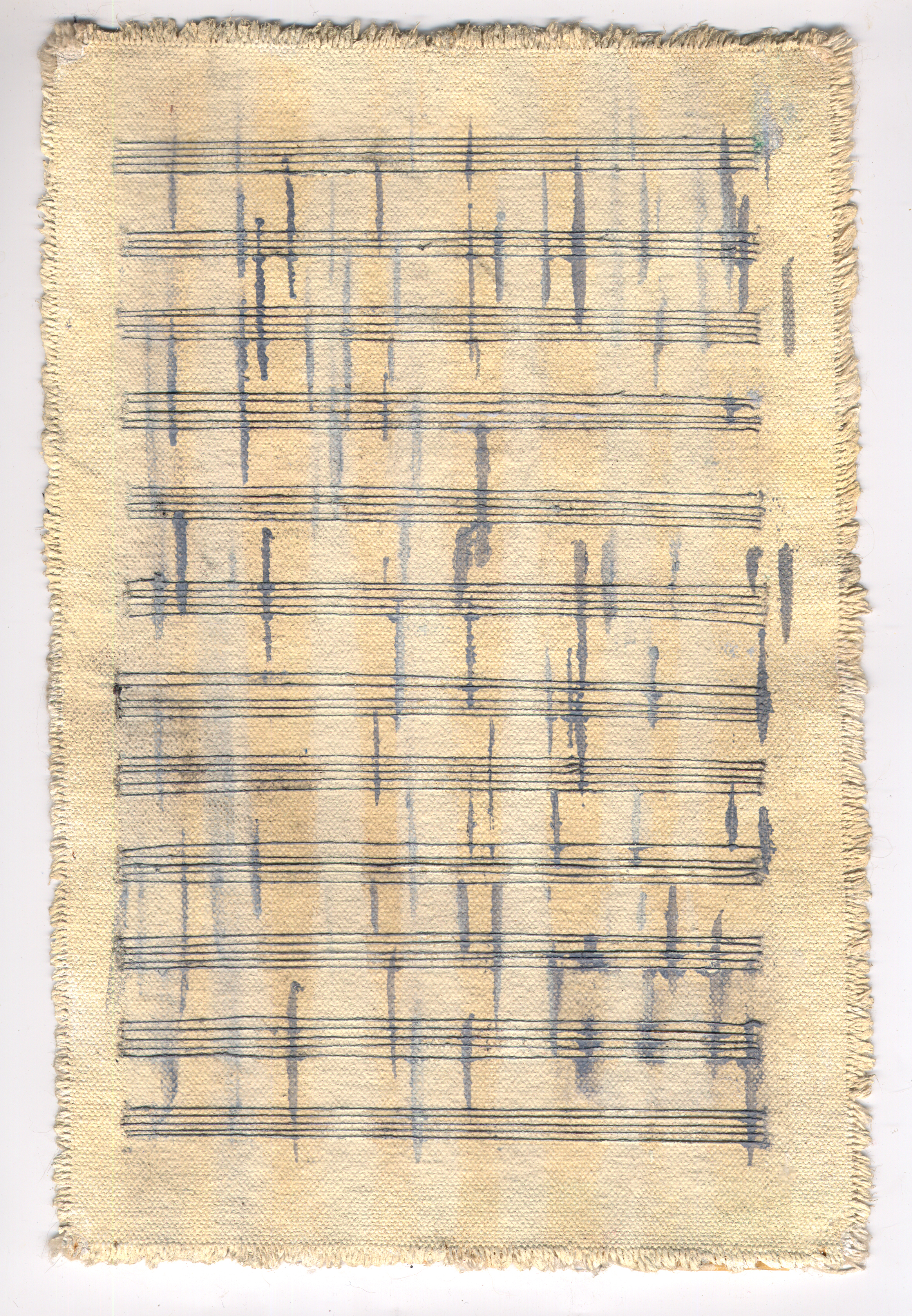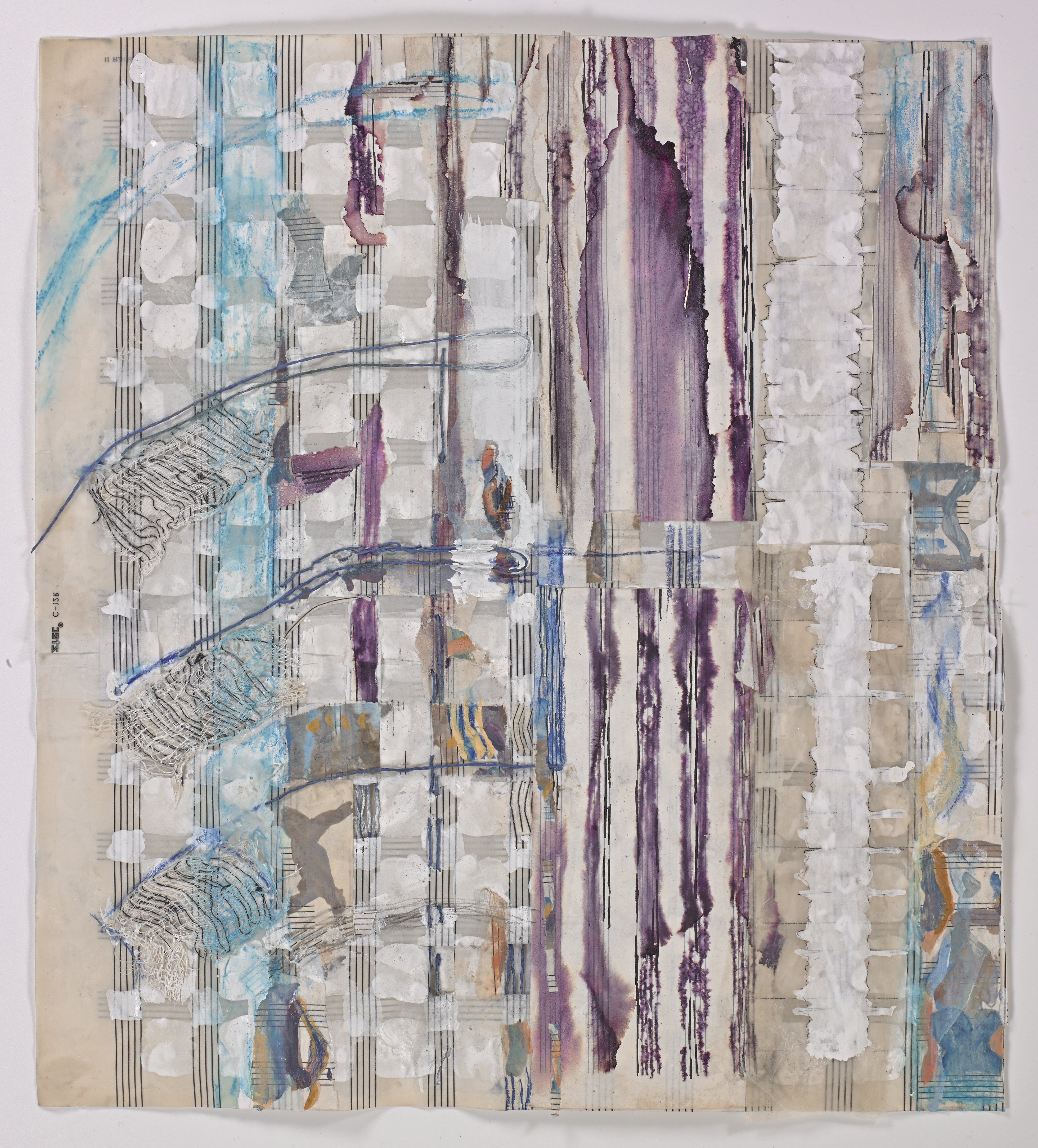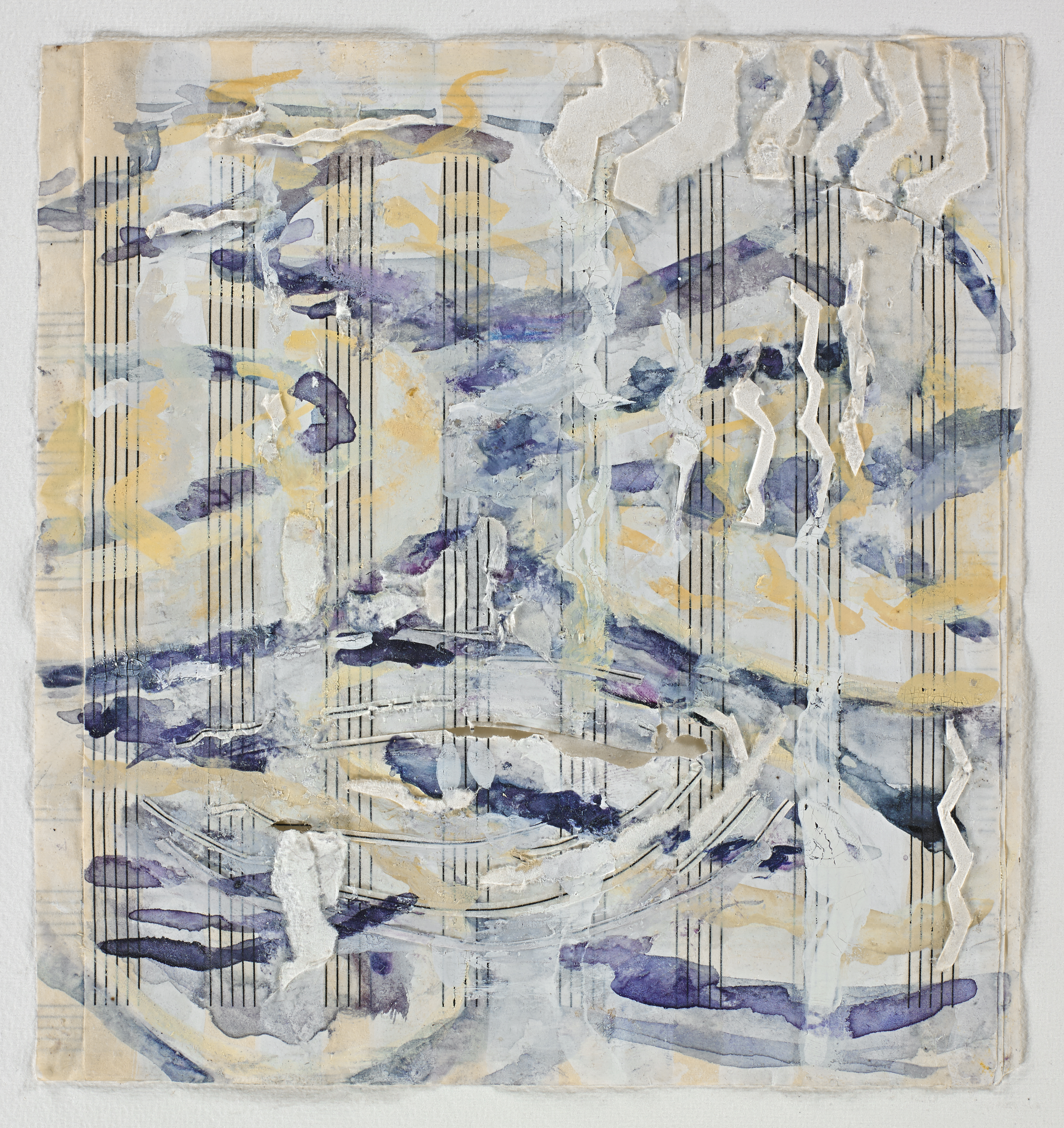 ING, 11, Music paper, watercolor, EEG test graphs, string, gauze and collage, 17″ x 11″, 2014