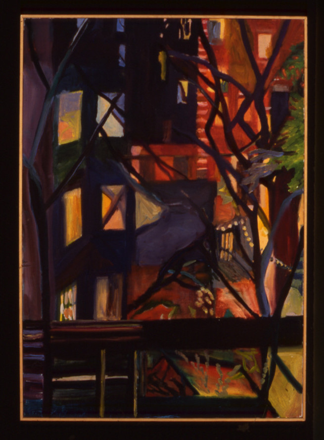 “Night Painting, Saint Marks Place, II”, oil on linen, 34″ x 24″, 1994