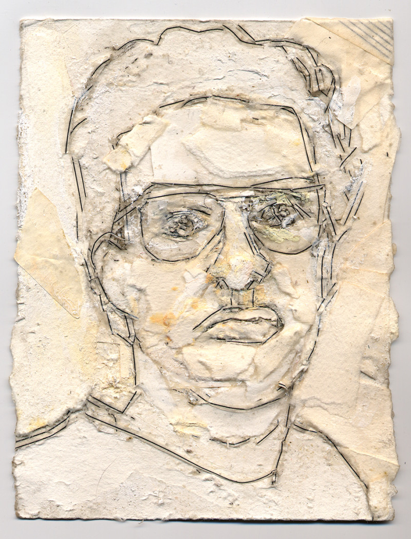 “My father M. Powell Lawton”, music paper collage with mixed media on paper, 6 x 4 3/4 “, 2001