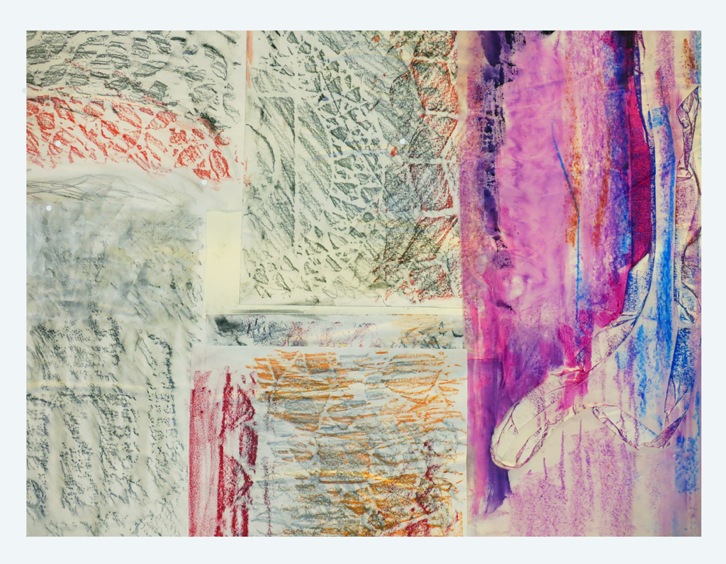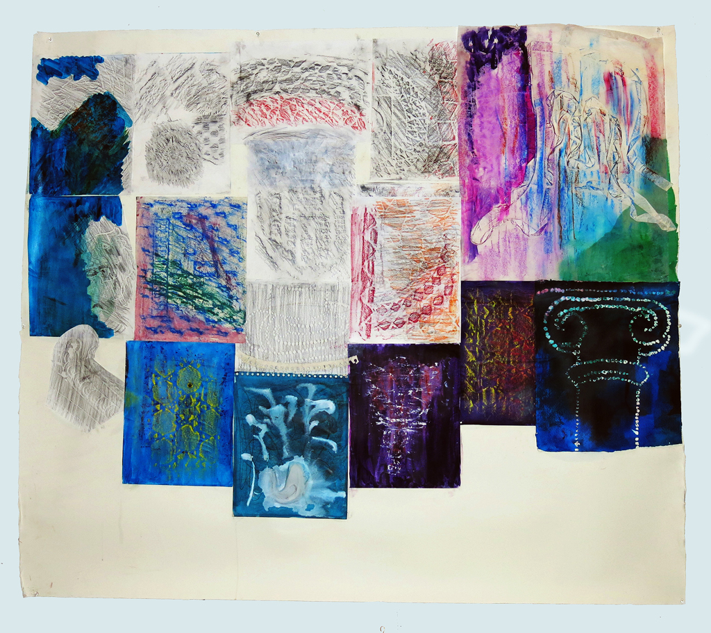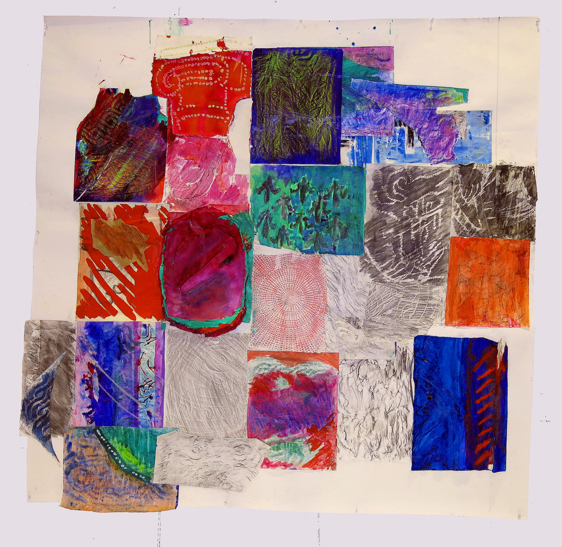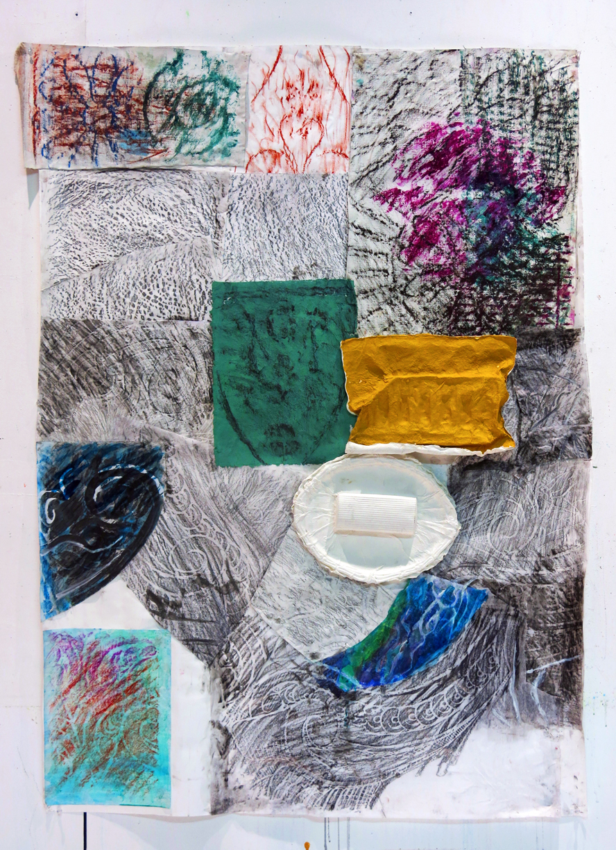 San Francesco, I, mixed media collage with casting, 54″ x 59″, 2019