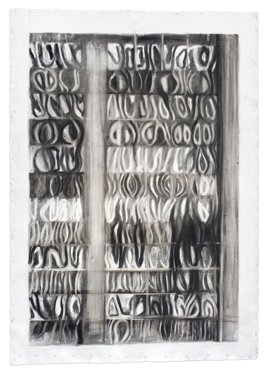 - “Tower 2, II”, charcoal on paper, 72″ x 55″, 1997